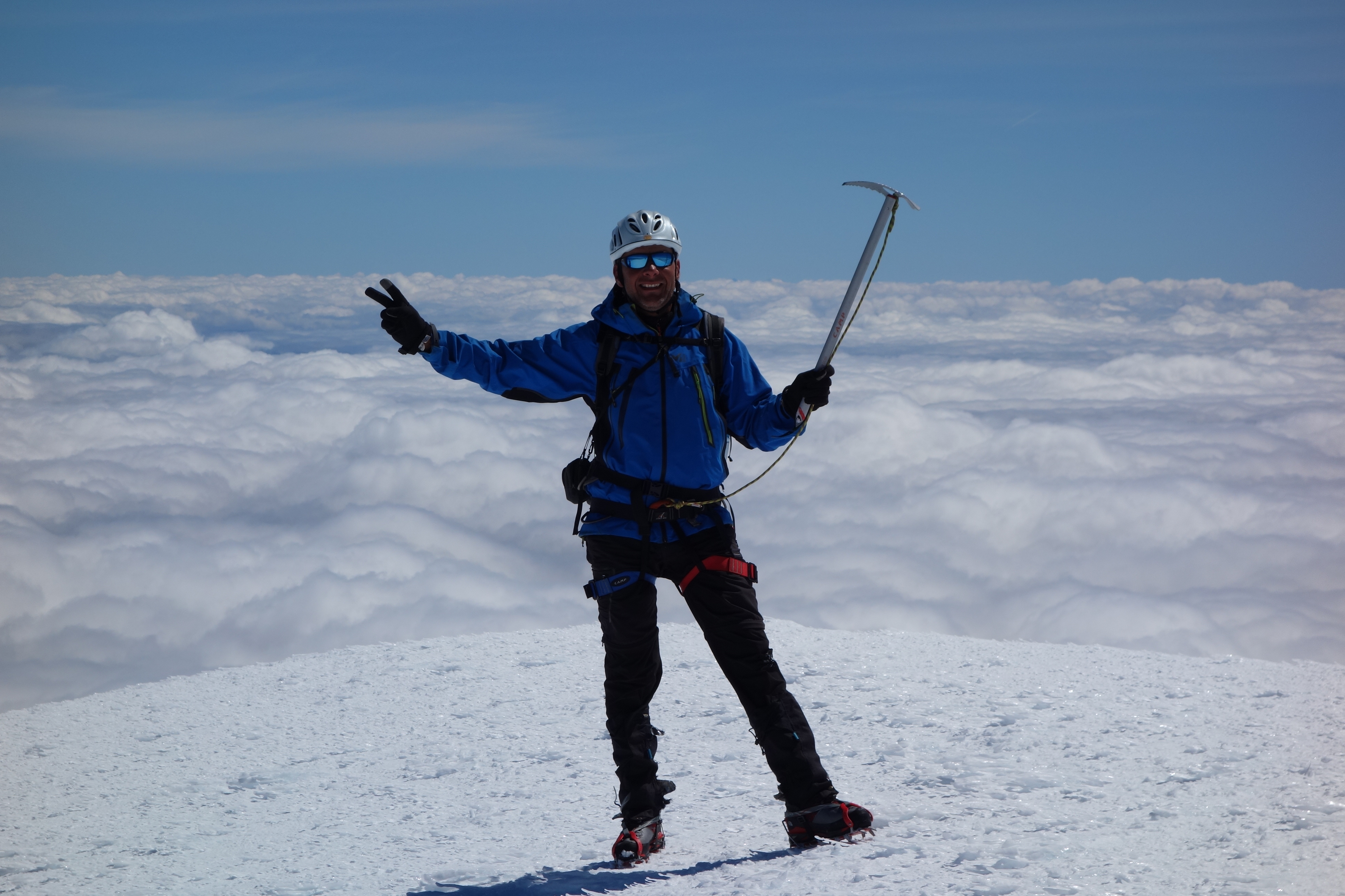 Pour conclure cette année pas comme les autres, notre cadeau mutuel sera l’ascension, le 23 décembre, du géant local au cône parfait : le volcan Osorno (2.661 m). Nuit en refuge, levé à 4h du matin pour un départ à 5h, 1.500 m d’ascension dont 600 sur glacier, piolets en main et crampons aux pieds, une escalade sommitale dans des pentes de 50 à 55 degrés, et, pour finir, une vue à 360 degrés d’une beauté stupéfiante sur le Llanquihue, et sur une mer de nuages d’où émergent comme des îles les sommets des volcans voisins. Joyeux Noël !